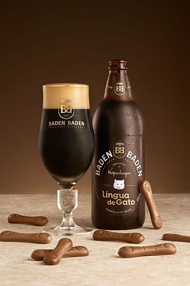 Em uma colaboração exclusiva no mercado nacional, a clássica Baden Baden Chocolate ganha uma nova leitura com a assinatura da Kopenhagen. A cerveja combina a doçura e a cremosidade do chocolate Língua de Gato com a refrescância da cerveja, em uma experiência envolvente, aromática e marcante, que traduz o melhor dos dois universos.