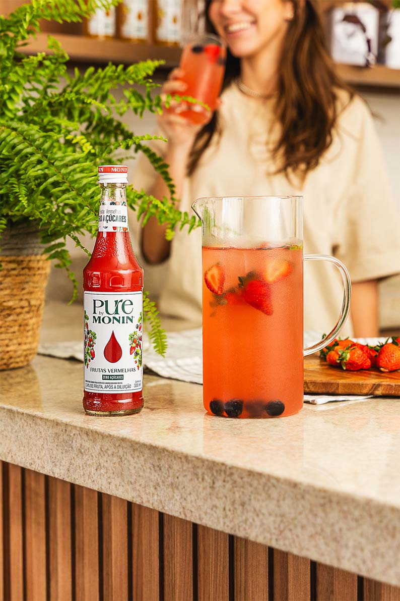 A Monin traz ao Brasil os produtos da linha Pure by Monin. Desenvolvidos na França, os concentrados de frutas chegam ao mercado com zero calorias e sem açúcar adicionado, adoçantes artificiais ou conservantes.