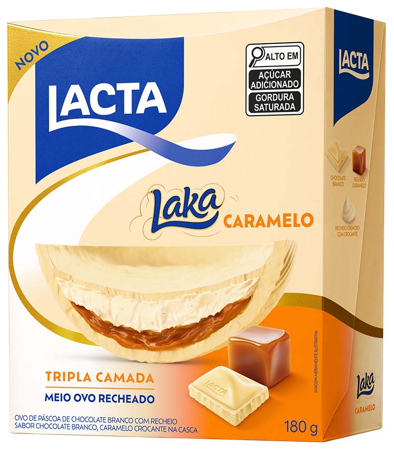 Entre os destaques está o Meio Ovo Recheado Laka Caramelo, lançamento que leva ao formato ovo a combinação da barra recheada Laka Caramelo. A novidade combina a cremosidade do chocolate branco Laka com recheio de caramelo, enquanto o formato de meio ovo amplia o acesso a uma experiência exclusiva, focada em contraste de sabores e texturas.