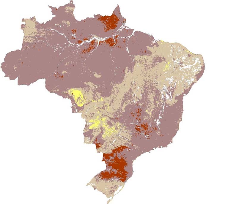 Mapeamento das classes texturais no território brasileiro até 100 cm de profundidade. Fonte: MapBiomas